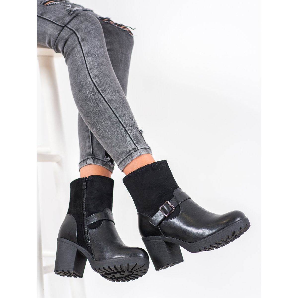 Wir laden Sie ein, modische Plateau-Stiefeletten von J. Star zu entdecken, die perfekt zu den Trends der Saison passen! Diese sexy und zeitlosen schwarzen Stiefeletten sind die perfekte Wahl für Frauen, die in jeder Situation elegant aussehen möchten. Dank der 2 cm hohen Plattform wird jeder Schritt stabiler, was sich in einem höheren Tragekomfort niederschlägt.