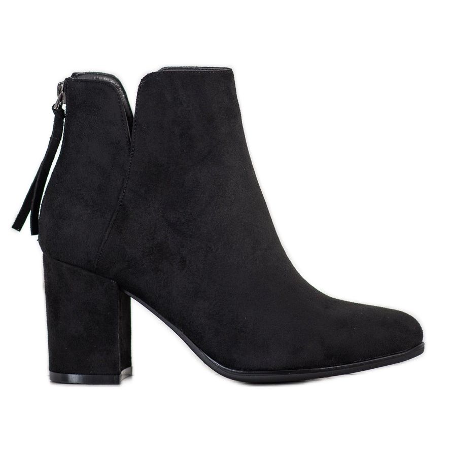 Die Stiefeletten Queentina zeichnen sich durch zusätzliche Fransen aus, die ihnen einen modischen Akzent verleihen. Ein seitlicher Reißverschluss erleichtert das An- und Ausziehen. Dieses Modell eignet sich sowohl für den täglichen Gebrauch als auch für verschiedene Arten von Feiern und eignet sich hervorragend für Abendausflüge oder Partys.
