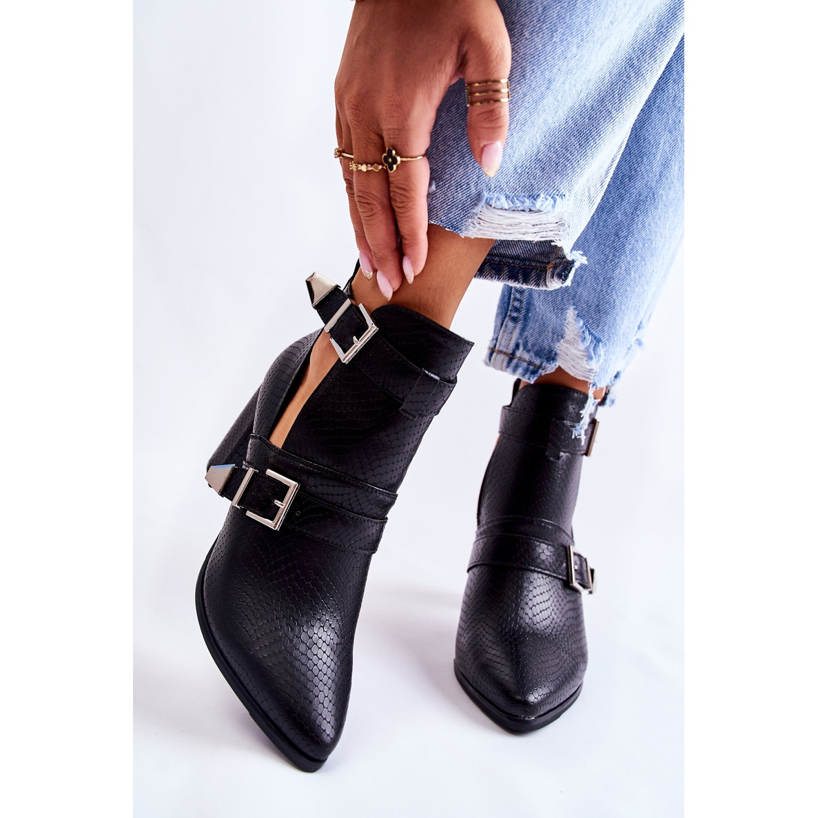 Die Stiefel zeichnen sich durch phänomenale Cutouts an den Seiten und eindrucksvolle Schnallen aus, die ihnen einen modernen Charakter verleihen. Zusätzlich befindet sich hinten am Obermaterial ein praktischer Reißverschluss, der das An- und Ausziehen der Schuhe erleichtert. Die spitze Zehenpartie macht den Fuß optisch schlanker, was sie zu einer idealen Wahl sowohl für alltägliche als auch für formellere Stylings macht.