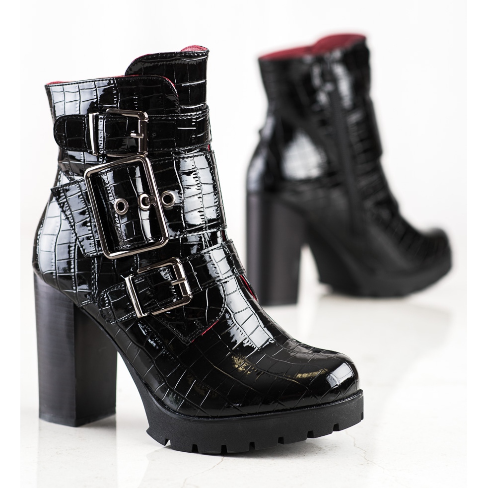 Die hochhackigen Stiefeletten von Erynn Fashion in Schwarz sind die perfekte Wahl für jede elegante Frau, die Stil und Komfort vereinen möchte. Aus hochwertigem ökologischem Leder gefertigt, überzeugen diese Lackstiefeletten durch ihr minimalistisches, aber modisches Design.