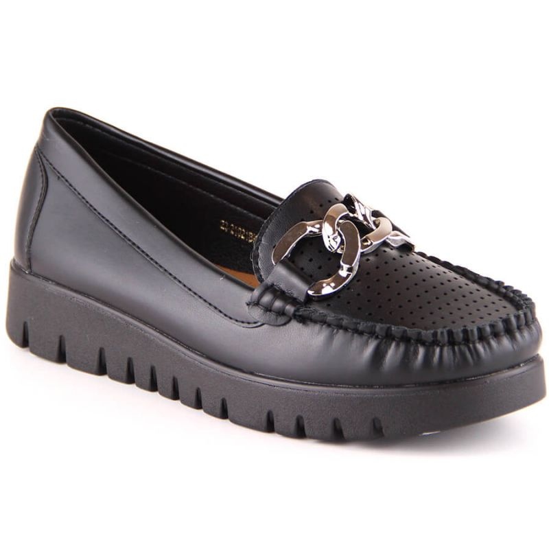 Die schwarzen Plateau-Loafer Potocki W YQ21021 mit Kette sind einzigartige Schuhe, die die neuesten Trends der urbanen Mode widerspiegeln. Diese Schuhe bieten Komfort für den Alltag und sind eine ausgezeichnete Wahl für Frauen, die Wert auf eine Kombination aus Stil und Komfort legen.