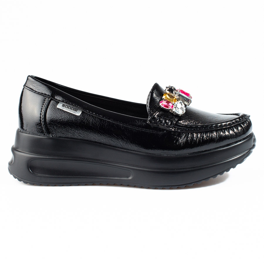 Goodin Goodin Mokassins aus Lackleder auf einem dicken Plateau mit Shelovet-Kristallen schwarz