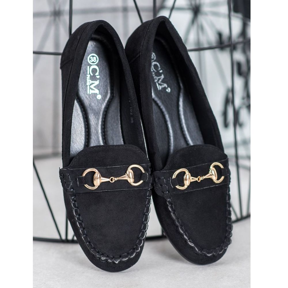 Cm Paris Mokassins mit Verzierung, schwarz, sind die perfekte Wahl für alle Frauen, die Wert auf Eleganz und Komfort im Alltag legen. Diese stilvollen Schuhe der renommierten Pariser Marke zeichnen sich durch ihren klassischen Schnitt und die universelle schwarze Farbe aus, die perfekt zu verschiedenen Stilen passt, sowohl lässig als auch etwas formeller.