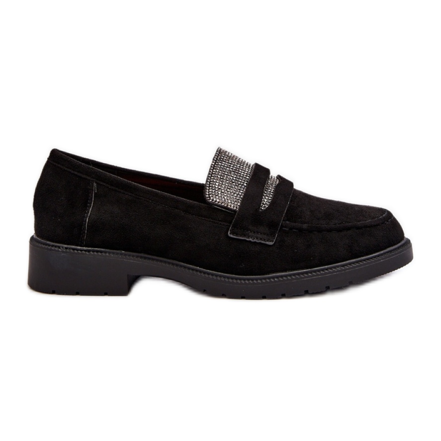 Moccasins Model Dananei 100-337 Black From Step In Style ist die perfekte Wahl für Frauen, die in alltäglichen Stilisationen Komfort und Eleganz schätzen. Diese schwarzen Ladungsstätten aus hochwertigem Öko -Wildleder erziehen sich mit subtilen Details - kleine, glänzende Zirkone, die ihnen einen einzigartigen Charakter verleihen.