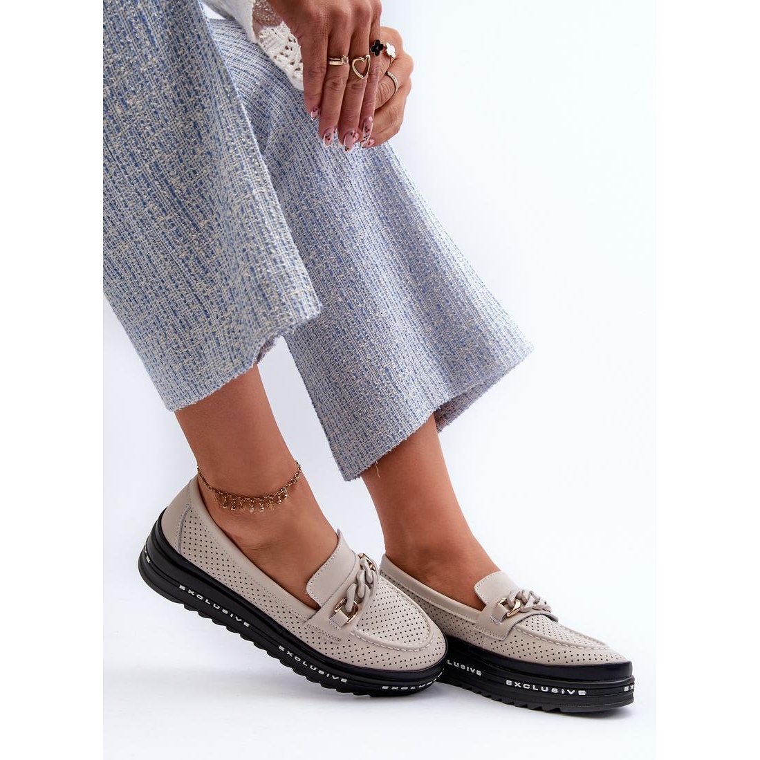 An der Vorderseite der Mokassins befindet sich ein spektakulärer Streifen mit einer Kette, die den gesamten Stil und den Mode Charakter verleiht. Das Setzen auf einer 4 -cm -Hochplattform sorgt für eine hervorragende Polsterung und Stabilität beim Gehen, was sie nicht nur stilvoll, sondern auch komfortabel macht. Darüber hinaus garantiert der Komfortledereinsatz eine ausreichende Fußunterstützung, was bei langfristigem Tragen äußerst wichtig ist.