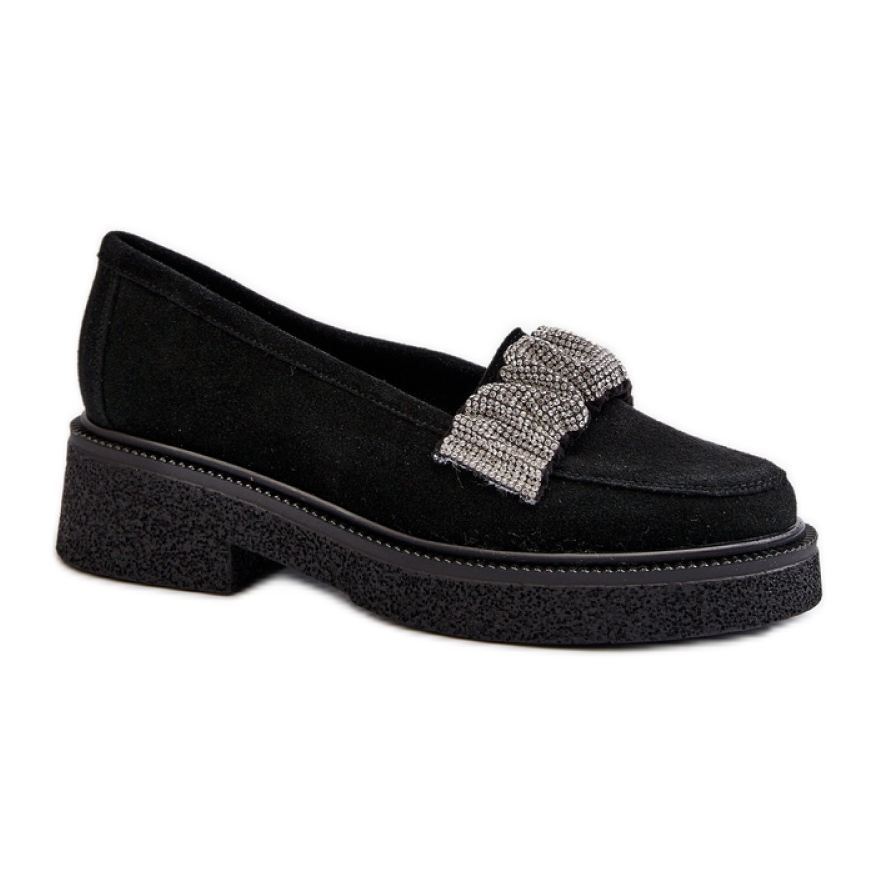 Moccasins Model Zazoo 3419 Schwarzes Wildleder aus Style Style ist ein großartiges Angebot für Frauen, die nach einer Kombination aus Eleganz und Komfort suchen. Diese Slebenden aus hochwertigem natürlichen Wildleder erfreuen sich mit ihrem exklusiven Erscheinungsbild und ihrem sorgfältigen Finish. Sie zeichnen sich durch einen subtilen, zerknitterten Riemen aus, der mit kleinen Zirkonen verziert ist, was ihnen einen einzigartigen Charme verleiht.