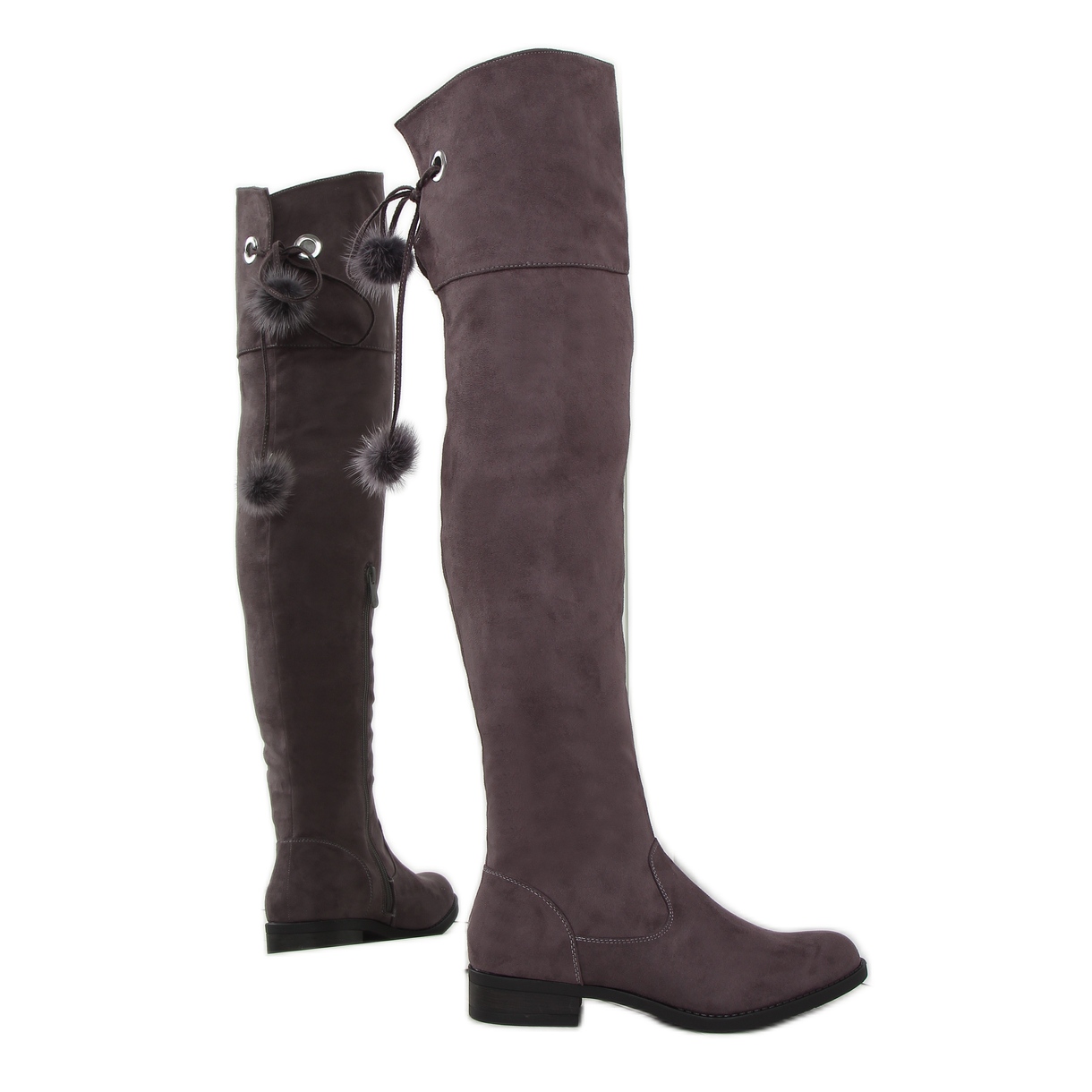 Die Schafthöhe über dem Knie und ein flacher Absatz von 3 cm machen diese Schuhe nicht nur stilvoll, sondern auch bequem im Alltag. Mokka-Stiefel mit Pompons passen perfekt zu Herbstmänteln, Freizeitoutfits oder eleganten Outfits und verleihen ihnen einen einzigartigen Charakter.