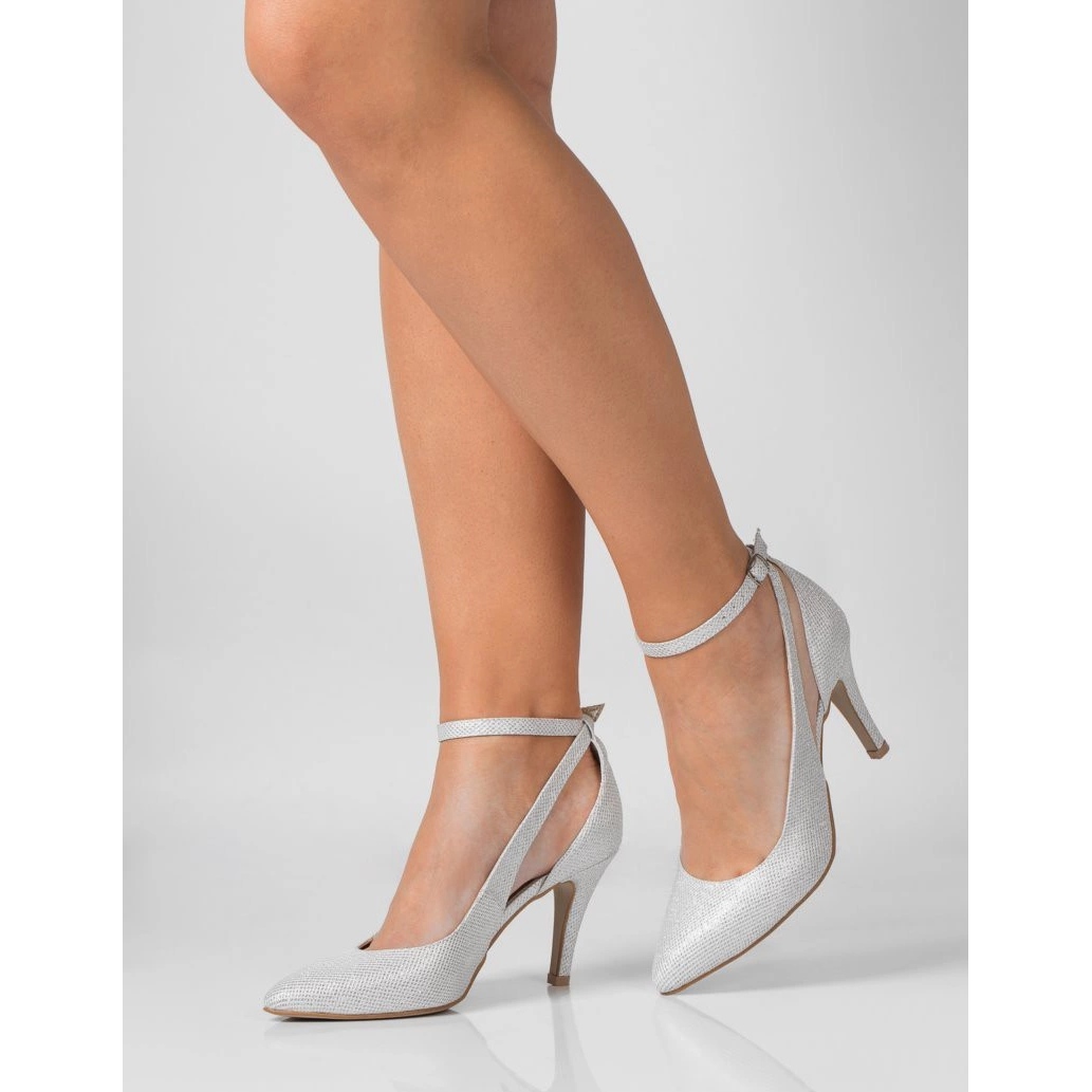 Details: BUTDAM Mona Tanz-Stilettos mit Knöchelriemen und Cutout silber-