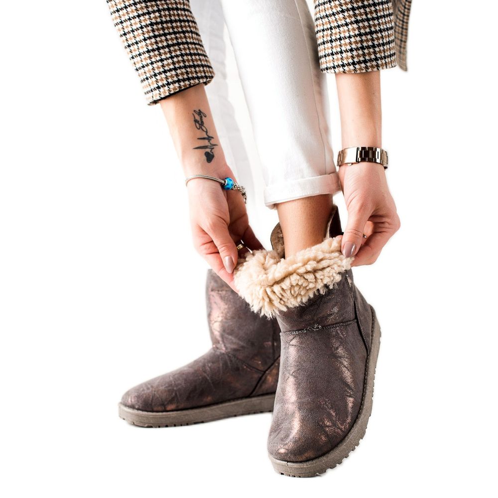 Entdecken Sie den einzigartigen Stil und Komfort der Wintertage dank der braunen Mukluks mit Glitzer des Herstellers Evento. Diese Damen-Schneestiefel sind die perfekte Kombination aus Mode und Funktionalität, was sie zu einer großartigen Alltagswahl in der Herbst-/Wintersaison macht.