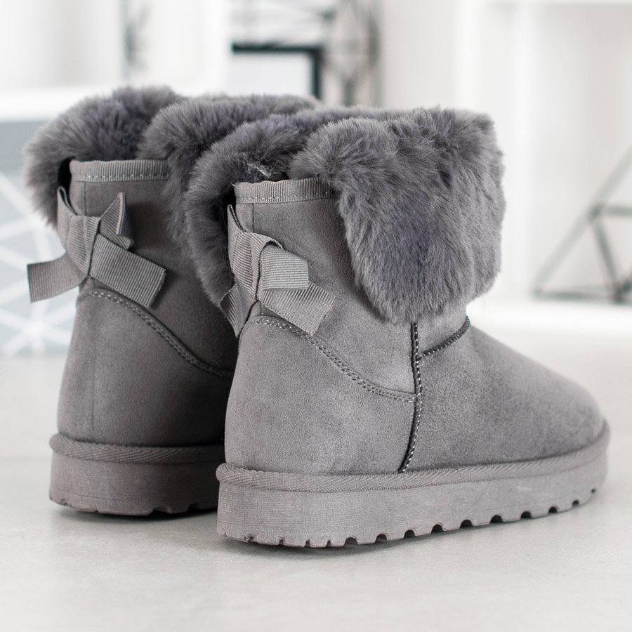 SHELOVET Mukluki mit grauem Fell ist die perfekte Wahl für Frauen, die Komfort mit Eleganz verbinden möchten. Diese warmen Schneestiefel sind aus ökologischem Wildleder höchster Qualität gefertigt und passen mit Sicherheit in die aktuellen Trends. Eine bezaubernde Schleife und Kunstfell am Obermaterial verleihen ihnen einen einzigartigen Charakter und machen jeden Schritt zum Vergnügen.