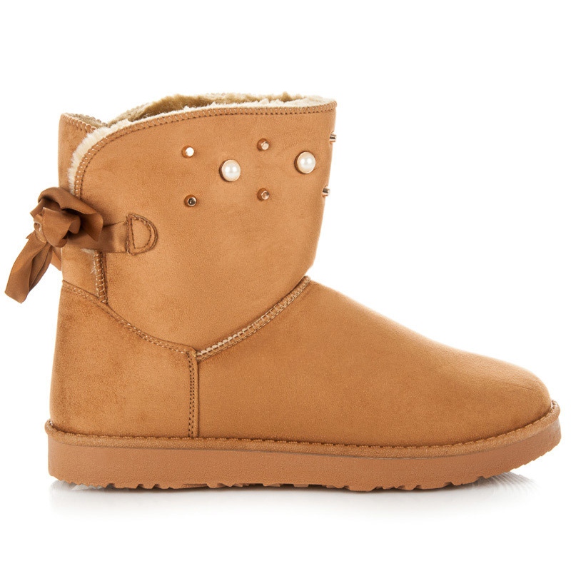 Mukluks zeichnen sich durch einen wunderschönen Braunton mit zarten Beige-Akzenten aus, der perfekt zu jedem Winter-Styling passt. Ein zusätzlicher Vorteil sind Strasssteine und Perlen, die ihnen einen einzigartigen Charakter verleihen und sie zu einer ausgezeichneten Wahl für Frauen machen, die Wert auf Mode und Originalität legen.