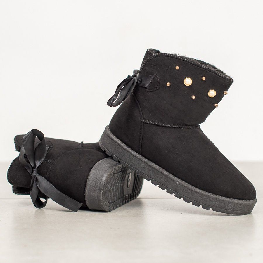 SHELOVET Mukluks mit Perlen in Schwarz sind perfekte Schuhe für kältere Tage und vereinen Stil und Komfort. Diese warmen und bequemen Damen-Schneestiefel bestehen aus hochwertigem ökologischem Leder und sind daher auch für Veganer eine geeignete Wahl.