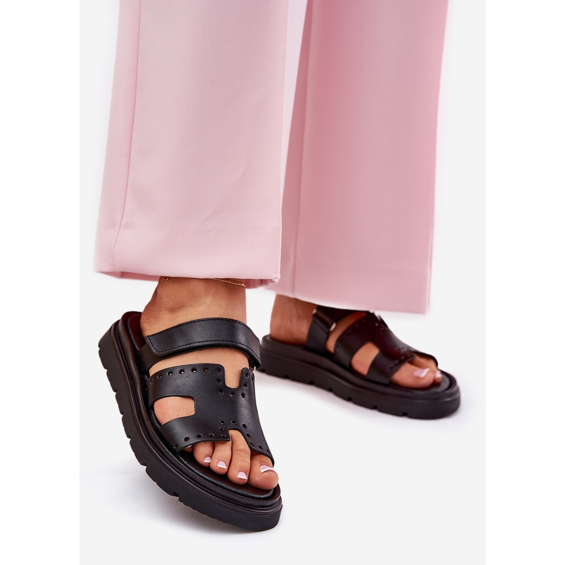 Details: Natural Leder -Hausschuhe für Frauen auf der Zazoo 40440 -Plattform schwarz