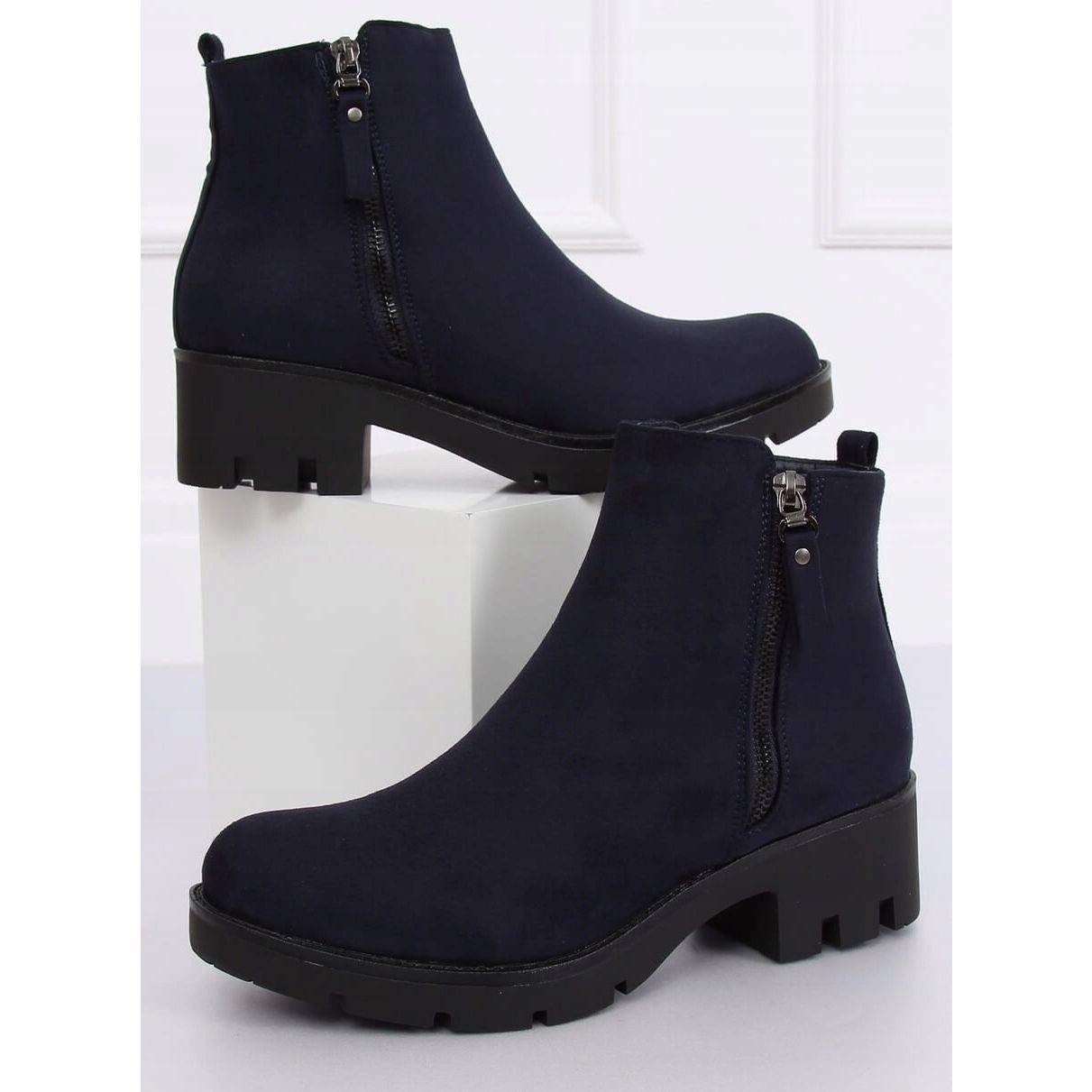 Wir präsentieren die dunkelblauen Chelsea-Stiefel NC832 Navy, die eine perfekte Wahl für die kommende Herbstsaison sind. Diese eleganten Damen-Stiefeletten aus Wildleder mit breitem 5-cm-Absatz sind ein absolutes Must-Have in jeder Garderobe.