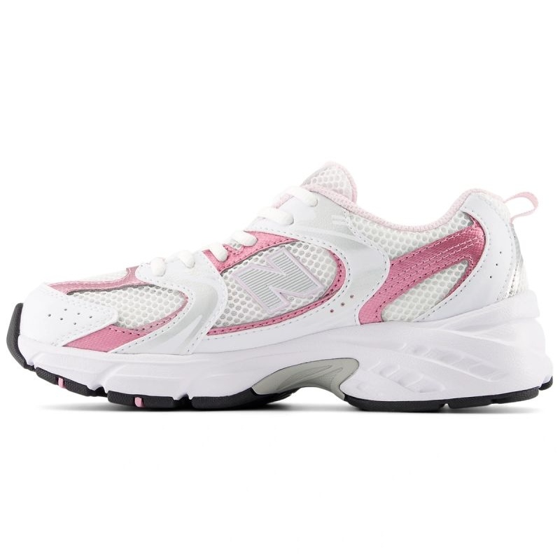 New Balance GR530RK Schuhe sind nicht nur funktional, sondern auch stylisch. Ihr modisches Design, kombiniert mit weißer Farbe und rosa Details, macht sie zu einer perfekten Ergänzung für jedes Jugend-Styling und passt perfekt zu Schultrends.