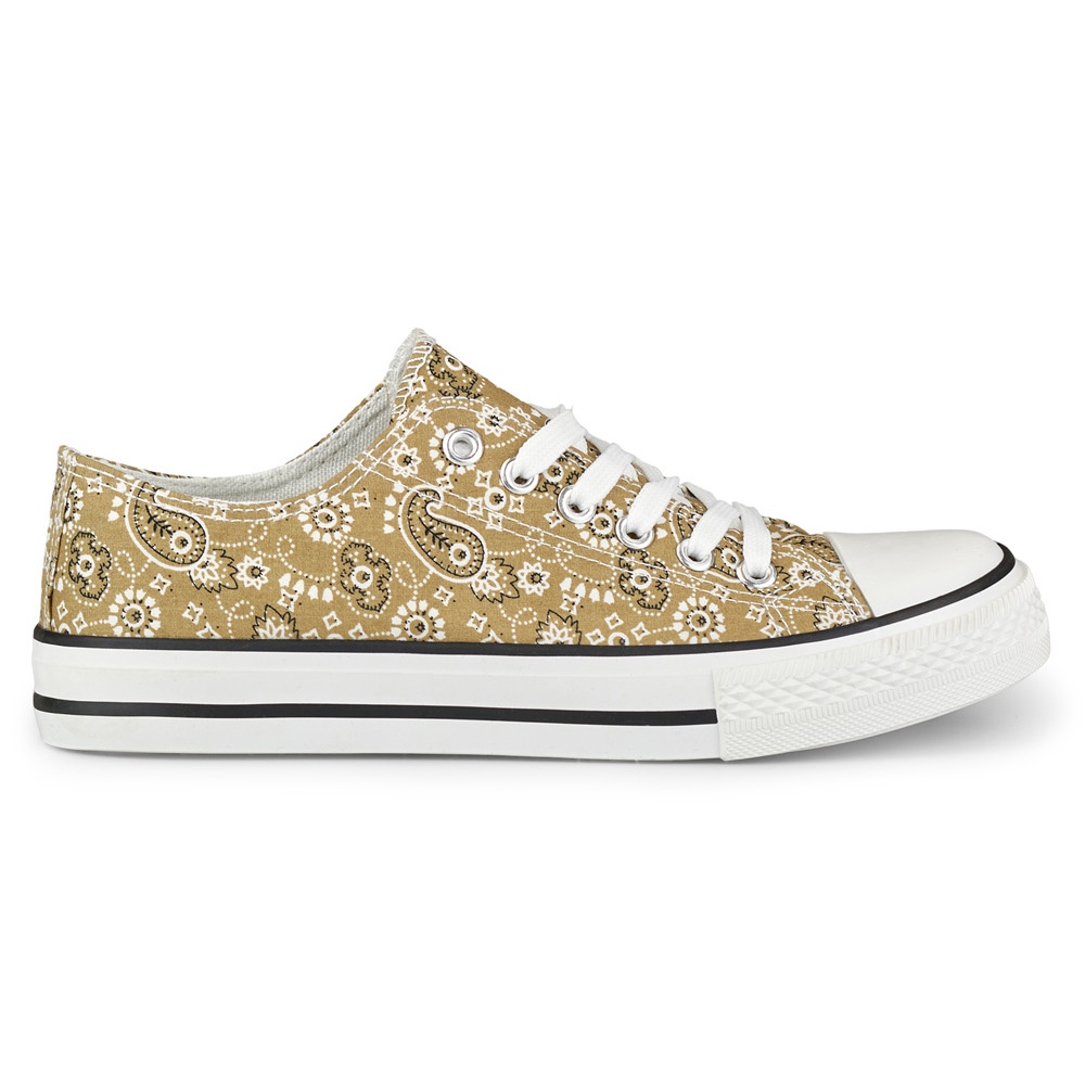 Die niedrigen beige Bandana-Sneaker sind die perfekte Wahl für Frauen, die Wert auf eine Kombination aus Stil und Komfort legen. Aus hochwertigem Textilmaterial gefertigt, sehen sie äußerst leicht und modisch aus, was sie zu einer perfekten Ergänzung für jedes Frühling-Sommer-Styling macht.