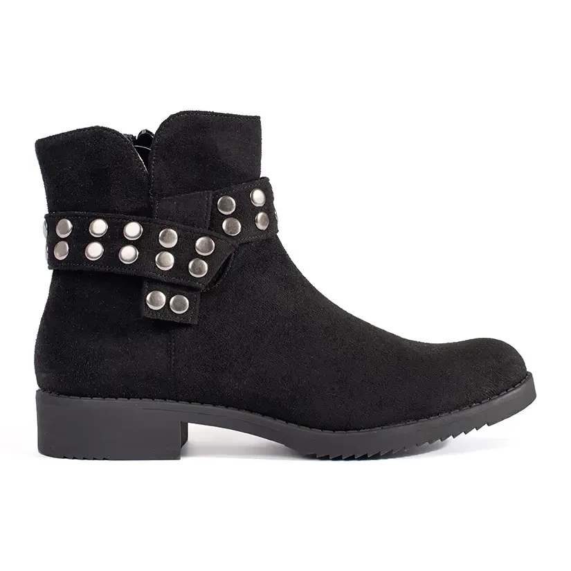 Inna marka Niedrige Damenstiefeletten aus Wildleder mit Strasssteinen schwarz