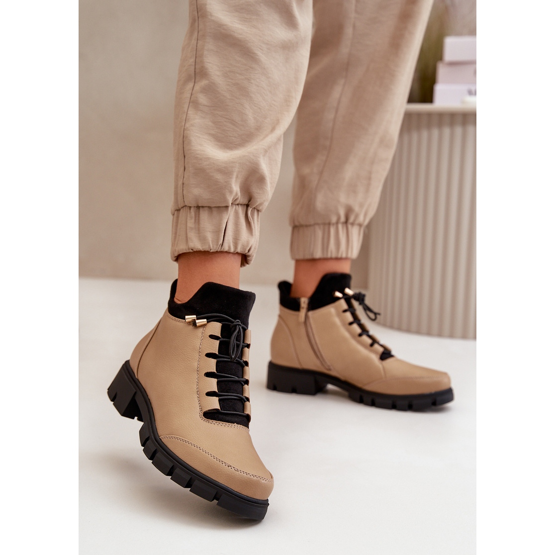 Details: Niedrige isolierte Damenstiefel aus Öko-Leder, Beige Erisabelle