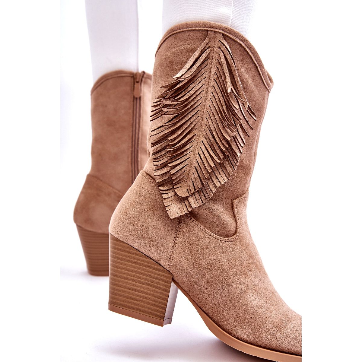 Details: S.Barski Niedrige Wildleder-Cowboystiefel für Damen mit Fransen, Beige