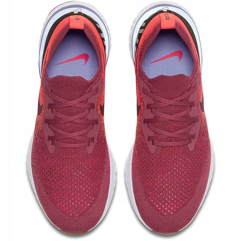 Frauenschuhe zum Laufen von Nike Epic React Flyknit AQ0070-601-Multicolored (Burgund, orange, schwarz mit roten und lila Akzenten)