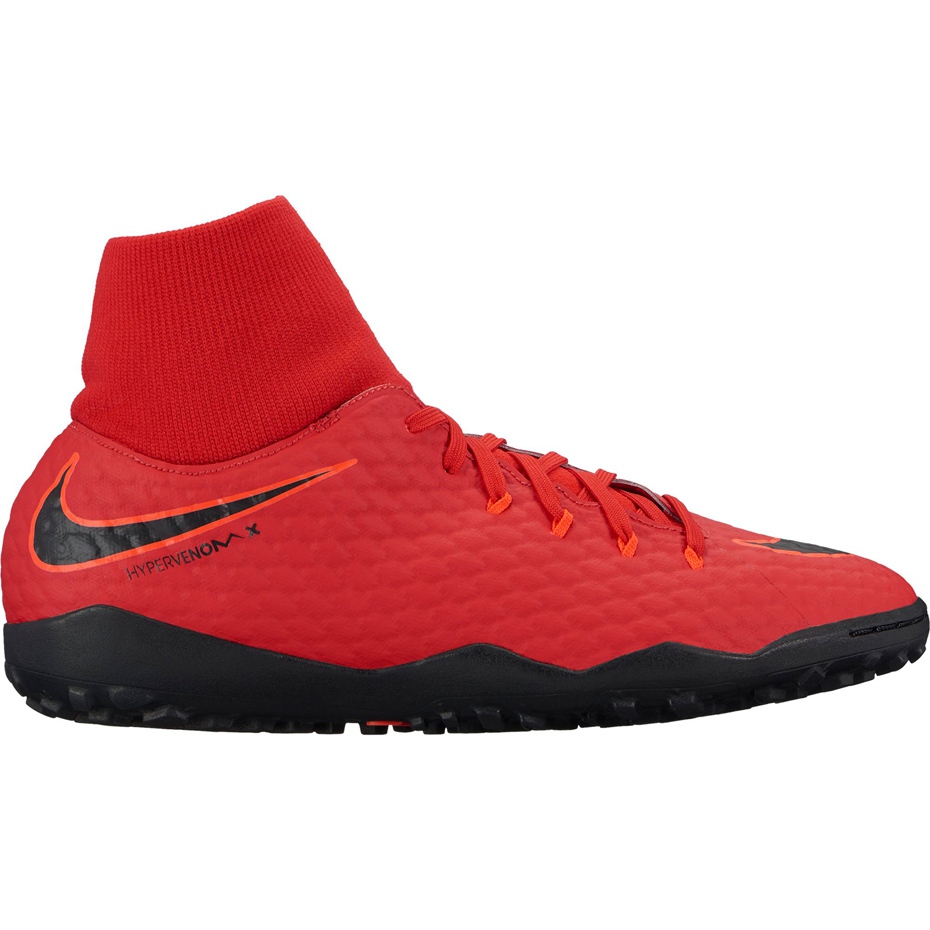 Nike Hypervenom X Phelon 3 DF TF 91769-616-rote Rasen für Spieler, die auf künstlichen Oberflächen nach Kontrolle und Dynamik suchen.
