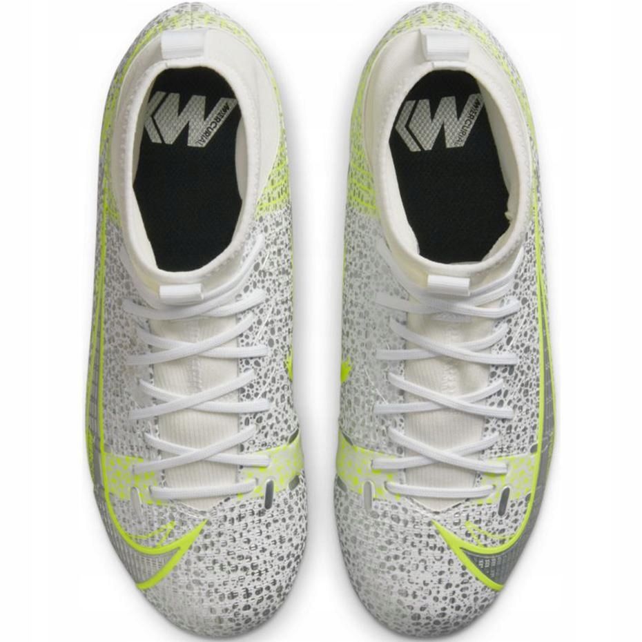 Nike Mercurial Superfly 8 Academy FG/MG Junior CV1127 107 - Fußballschuhe für junge Spieler, die Geschwindigkeit, Komfort und etwas Kontrolle über den Ball erwarten. Das Modell aus der Silver Safari -Kollektion kombiniert modernes Design in Silber mit funktionalen Lösungen, die aus der Quecksilberlinie bekannt sind.
