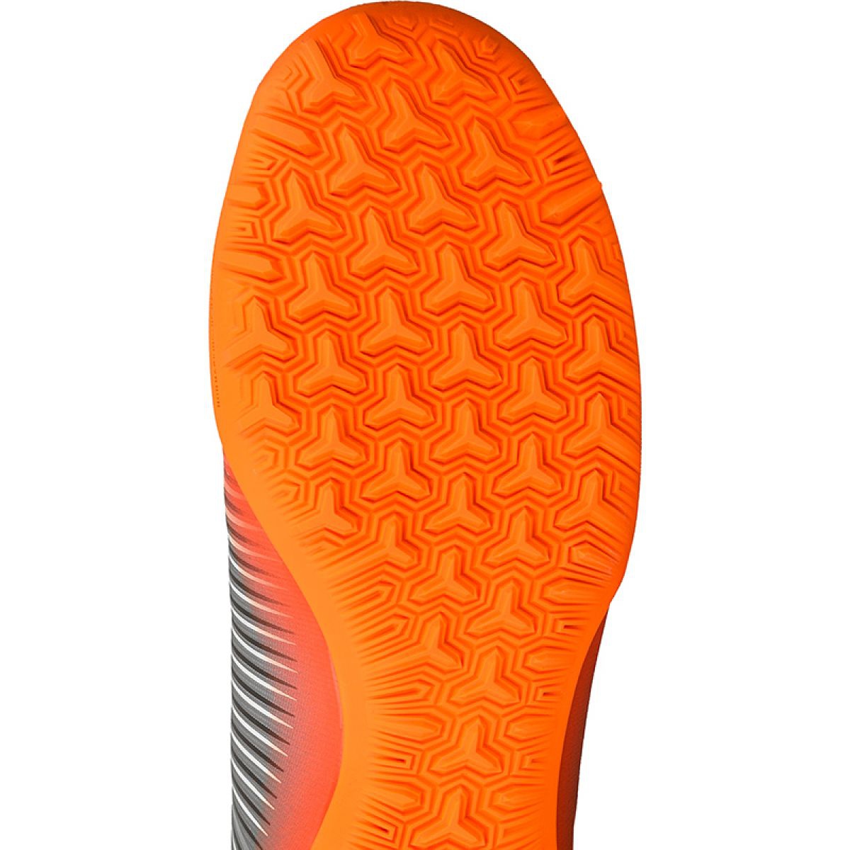 Die dominierende graue Farbe des Schuhwerks, angereichert mit mehrfarbigen Akzenten und orangefarbenen Details, macht diese Schuhe zu einer universellen und zugleich attraktiven Ergänzung für jedes Fußballoutfit. Die Außenkonstruktion aus hochwertigem Synthetikmaterial garantiert ausreichende Haltbarkeit und Widerstandsfähigkeit gegen Beschädigungen, während das Innensohlenmaterial aus Stoff für Komfort und ausreichende Belüftung des Fußes beim Spielen sorgt.