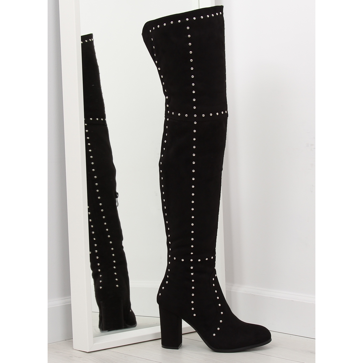 - Schafthöhe: über dem Knie (Oberschenkelstiefel)