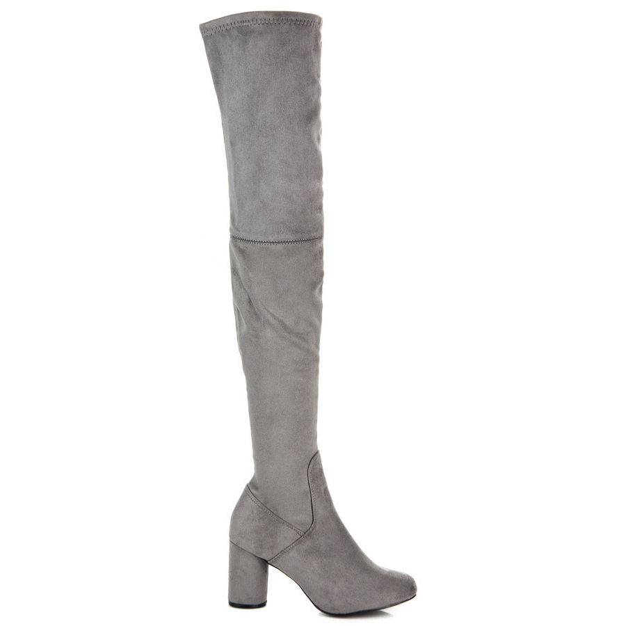 Details: Vices Oberschenkelhohe Stiefel mit hohem Absatz grau