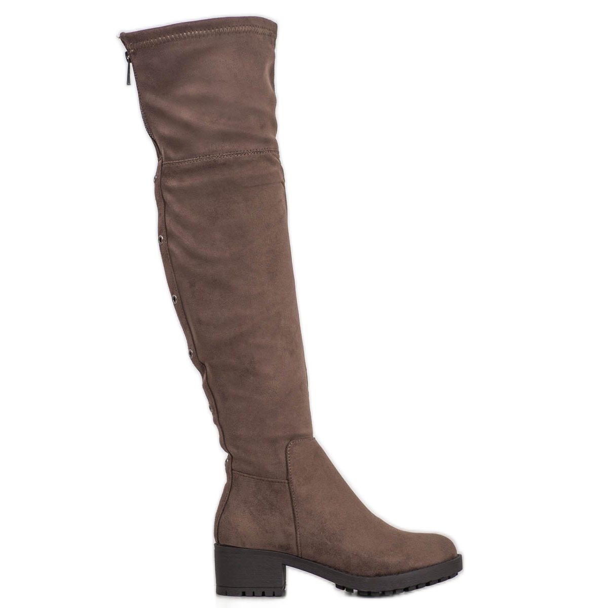 Plateaustiefel der Marke Super Me sind diesen Herbst und Winter ein Must-Have! Aus hochwertigem, lederähnlichem Material gefertigt, sehen sie stilvoll und elegant aus und werden mit ihrer sinnlichen grünen Farbe sicherlich alle Blicke auf sich ziehen. Das Obermaterial über dem Knie verleiht Charakter und sorgt dafür, dass die Schuhe gut zu verschiedenen Stilen passen.