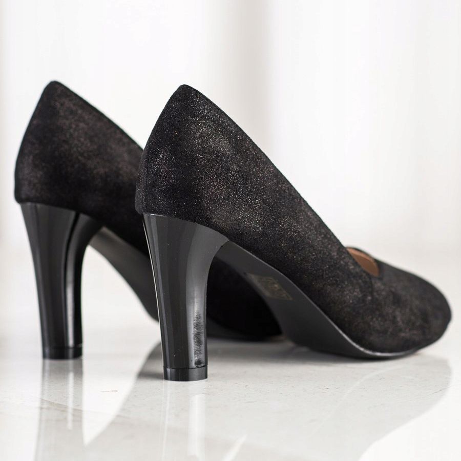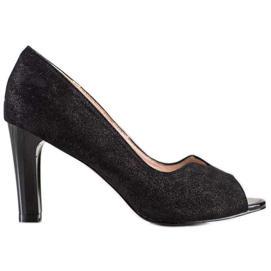 Das Obermaterial der Pumps besteht aus schwarzem, wildlederähnlichem Material, das glitzernd schimmert und Alltags- und Abend-Stylings einen einzigartigen Glanz verleiht. Offene Zehen und abgerundete Zehen verleihen den Schuhen Leichtigkeit und Eleganz und machen sie perfekt für alle Arten von Feiern und Partys.