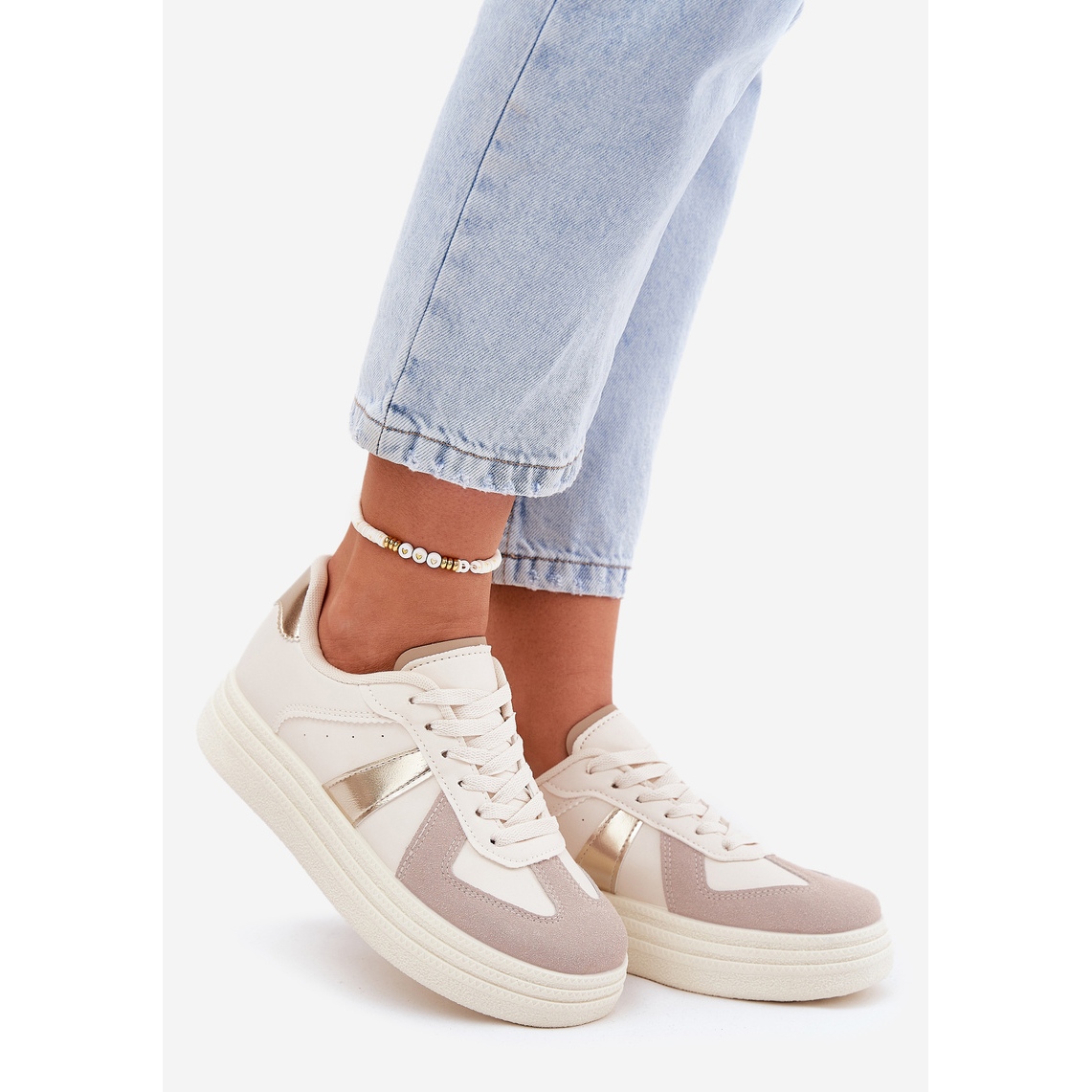 Dank der 3,5 cm hohen Plattform verlängern unsere Turnschuhe nicht nur die Figur, sondern werden auch die perfekte Wahl für aktive Frauen, die modisches Aussehen und Komfort schätzen. Ihre universelle Beigefarbe ist leicht mit einer Vielzahl von Stilisierungen zu kombinieren, was sie zu einem großartigen Element der Garderobe für jeden Anlass macht - von täglichen Spaziergängen bis hin zu lässigeren Treffen.