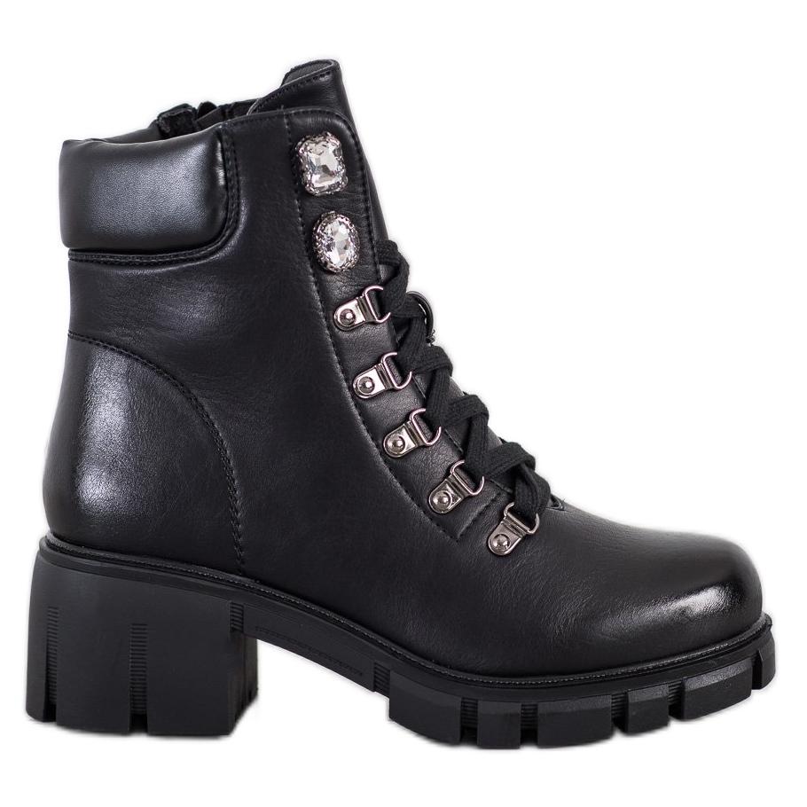 Hier sind die perfekten Alltagsschuhe – Women's Eco Leather Workers von Ideal Shoes. Diese einzigartigen schwarzen Schuhe vereinen Eleganz mit einem rockigen Stil und sind somit die perfekte Wahl sowohl für Freizeitausflüge als auch für gewagtere Anlässe.