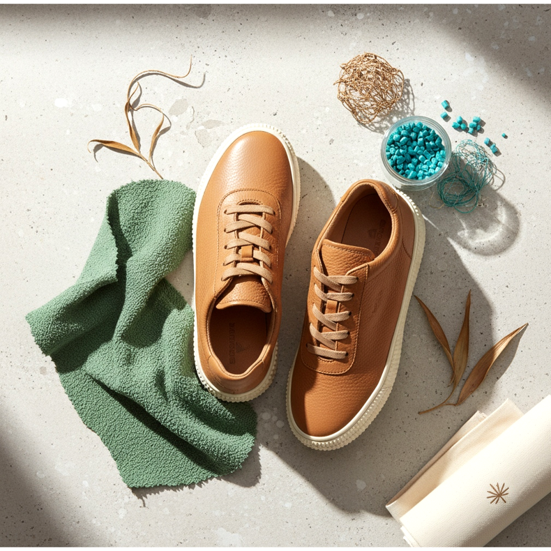 In der Praxis können Öko-Schuhe aus organischen Materialien (Bio-Baumwolle, Leinen, Hanf), recycelten Materialien (recycelte PET-Flaschen, Altreifen, Meeresabfälle) oder innovativen Lederersatzstoffen (Leder aus Pilzen, Ananas, Kaktus) hergestellt werden. Sohlen bestehen häufig aus Naturkautschuk oder recyceltem Gummi.