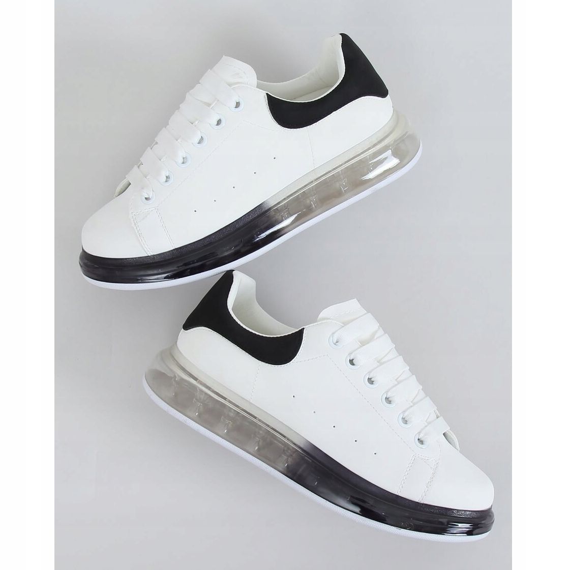 Sneakers mit Ombre-Sohle N03 WHITE/BLACK sind die perfekte Wahl für jede modebewusste Frau, die Wert auf Komfort und Stil legt. Diese Schnürschuhe zeichnen sich durch einen modernen, sportlichen Schnitt aus, der perfekt zu aktuellen Trends passt. Die Sohle im Ombre-Stil zieht die Blicke auf sich und kontrastierende Elemente verleihen den Sneakern einen einzigartigen Charakter und machen sie zu einer perfekten Ergänzung für jedes Alltags-Styling.