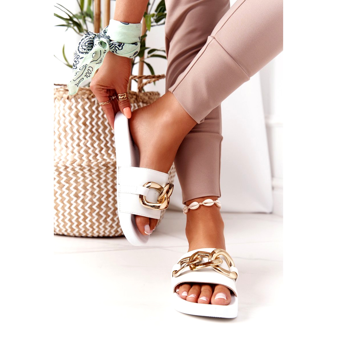 Die zehenstegsandalen wurden für moderne Frauen entworfen, die Minimalismus kombiniert mit modischen Akzenten schätzen. Die dekorative Kette verleiht Charakter und macht sie zu einer perfekten Ergänzung für Sommer-Styles. Darüber hinaus garantieren ihre leichte Konstruktion und die 2,5 cm hohe Sohle Komfort bei jedem Schritt.