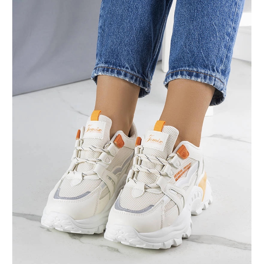 Inna marka Opalbeige Sneakers mit Neoneinsätzen