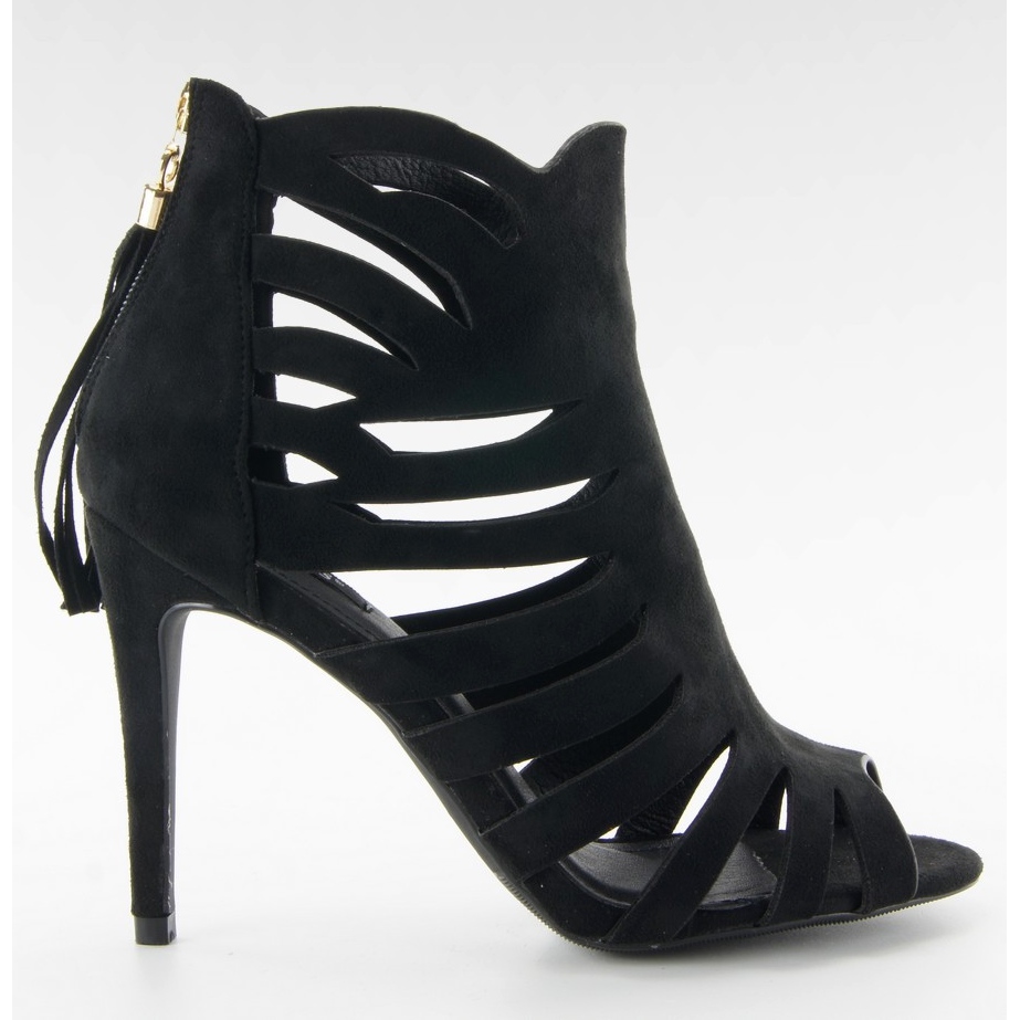 Inna marka Openwork 1214 Schwarze Fransenabsätze