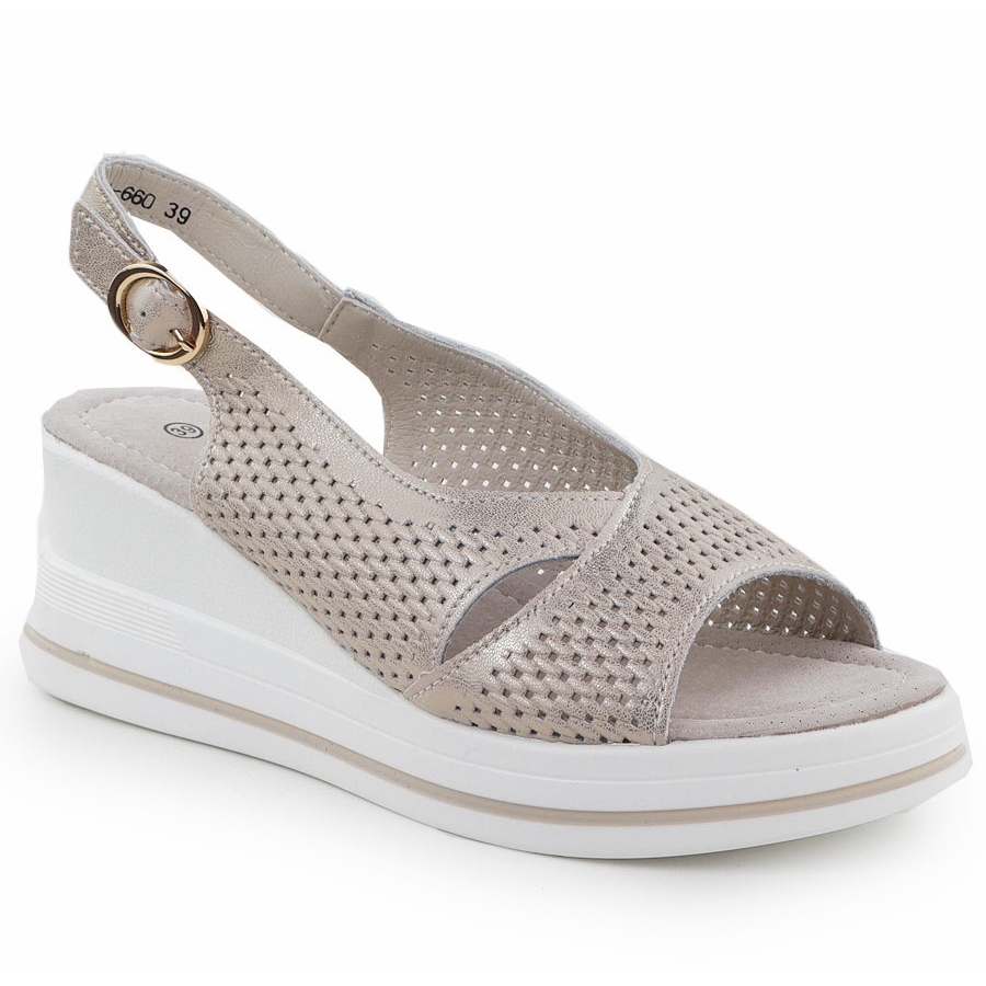 Details: S.Barski Openwork Frauen-Ledersandalen auf den Złote S. Barski LR51-660 Wedges golden