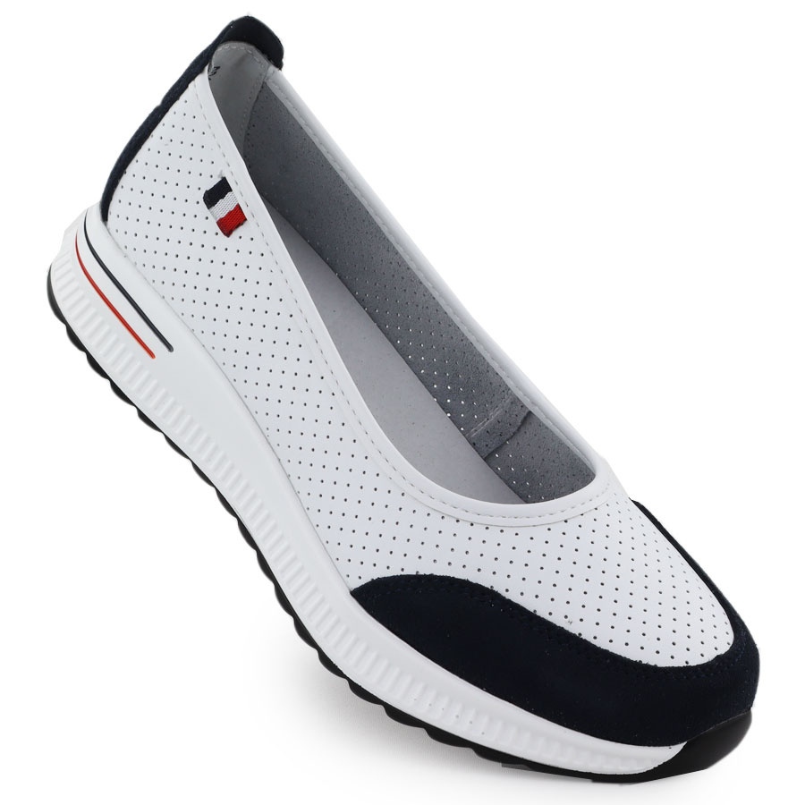 Weiße Ballerinas harmonieren perfekt mit verschiedenen Stilisierungen, von lässig bis etwas eleganter. Es lohnt sich zu betonen, dass sie in Standardgröße erhältlich sind, was das Einkaufen erleichtert. Wählen Sie einfach die Größe, die Sie am häufigsten tragen.