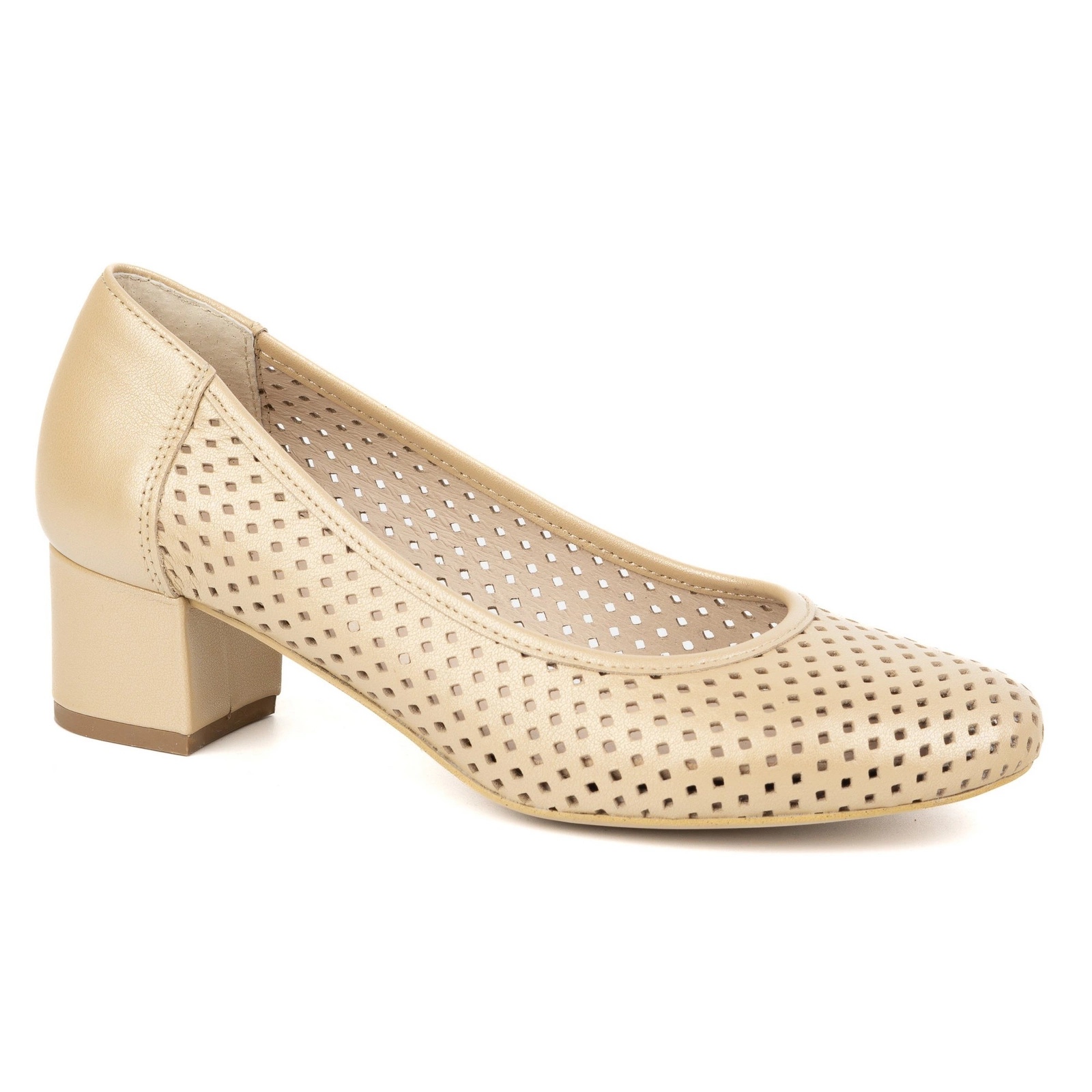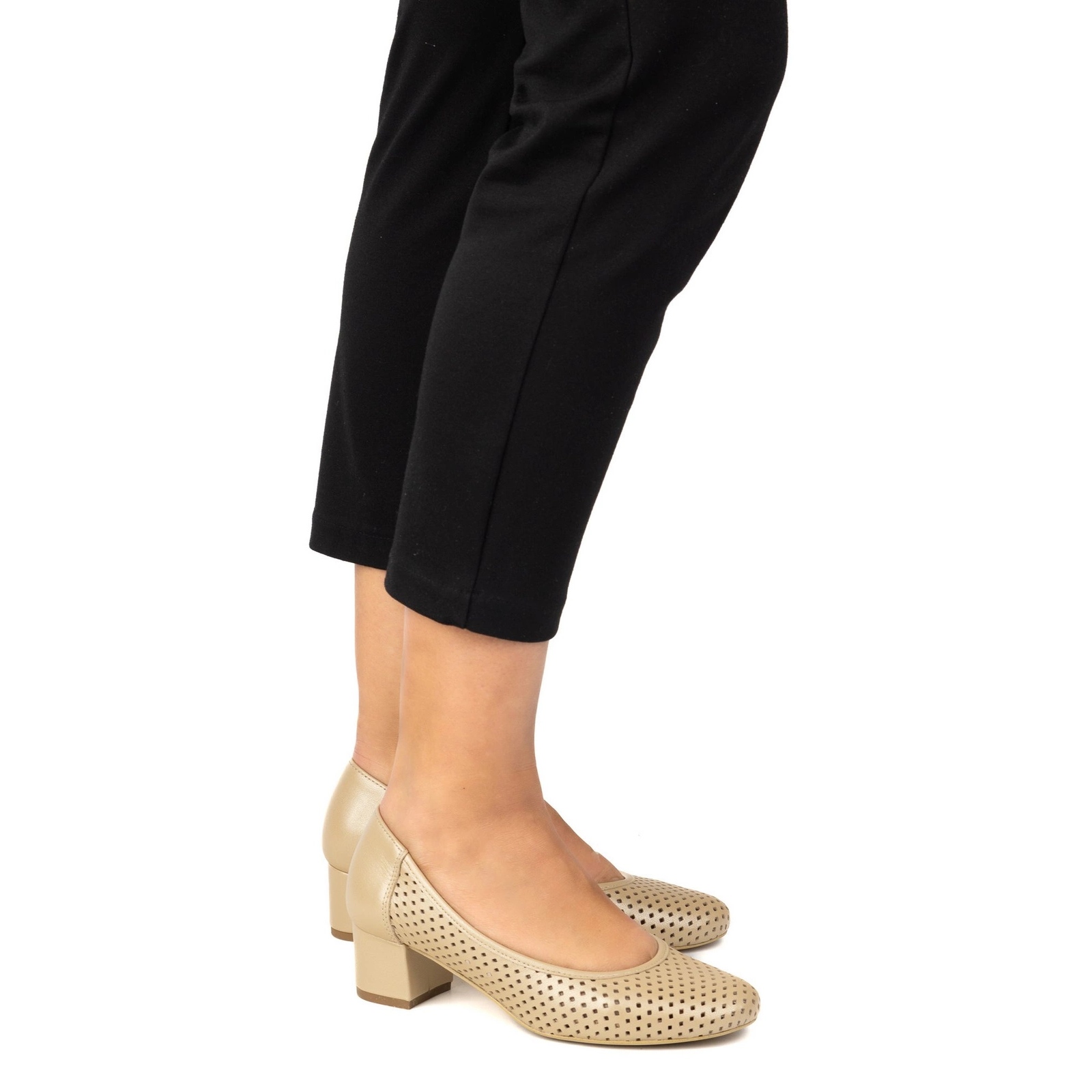 Details: Exquisite Openwork Lederpumpen auf einer stabilen Ferse 1622ex Beige