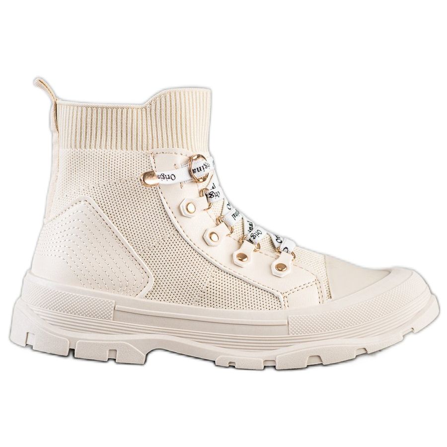 Das Obermaterial der Schuhe besteht aus hochwertigem ökologischem Leder und Textilmaterialien, was Haltbarkeit und Tragekomfort garantiert. Dank des weichen, eingearbeiteten Absatzes können Sie den ganzen Tag über Komfort genießen, egal ob Sie ihn in der Stadt oder beim Spaziergang verbringen. Die runde Spitze zeigt einen dezenten, femininen Stil und durch die beige Farbe lassen sich die Schuhe leicht mit verschiedenen Stilen kombinieren.