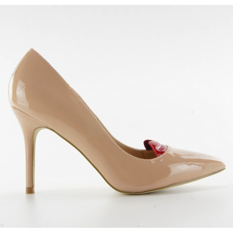 Original rosafarbene Pumps mit Lippenapplikation – eine Kombination aus Klassik und Spaß. Die lackierte Oberfläche in Braun- und Beigetönen mit einem markanten roten Akzent in Form von Lippen auf der Nase zieht die Blicke auf sich und verleiht dem Styling einen einzigartigen Charakter. Ein 9,5 cm hoher Absatz verlängert die Silhouette und sorgt gleichzeitig für einen eleganten, femininen Schnitt.