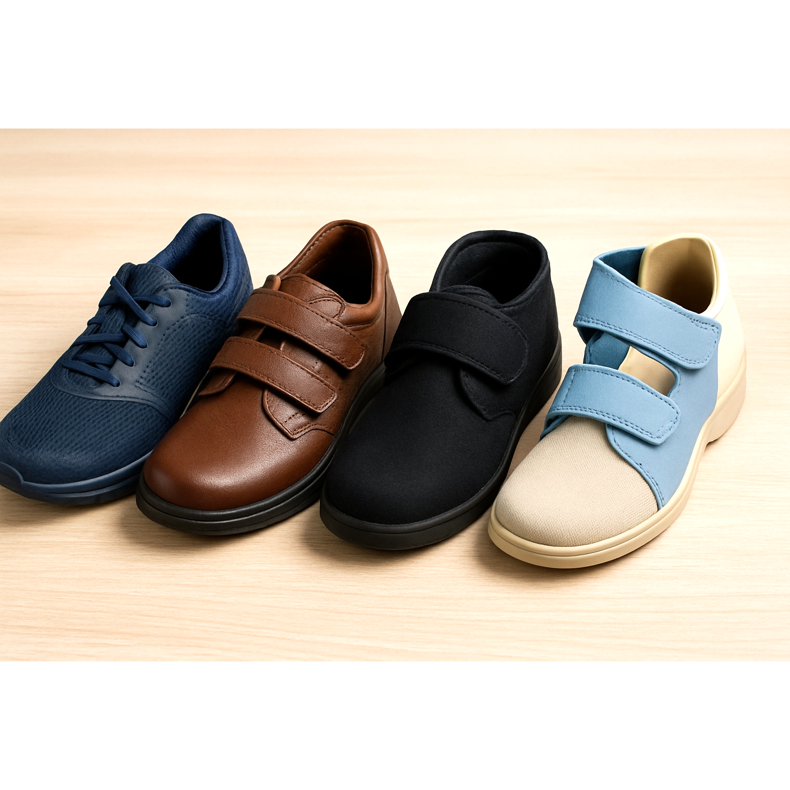 Schuhe für Menschen in der Rehabilitation. Sie verfügen oft über spezielle Versteifungen, verstellbare Verschlüsse und Sohlen mit Druckverteilung, die den operierten Bereich schützen. Abhängig von der Art der Operation können sie eine vorübergehende Lösung während der Genesung oder ein dauerhafter Bestandteil Ihrer Garderobe sein.