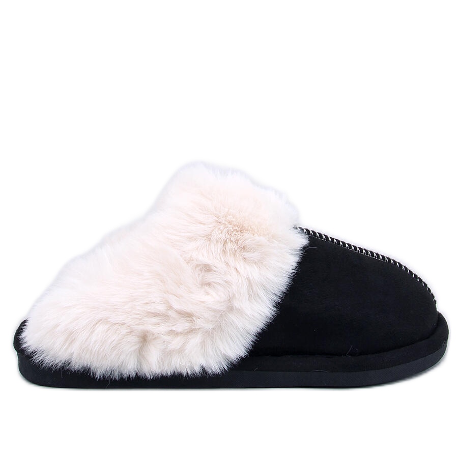 Details: Otteys Schwarze Damenhausschuhe mit Fell