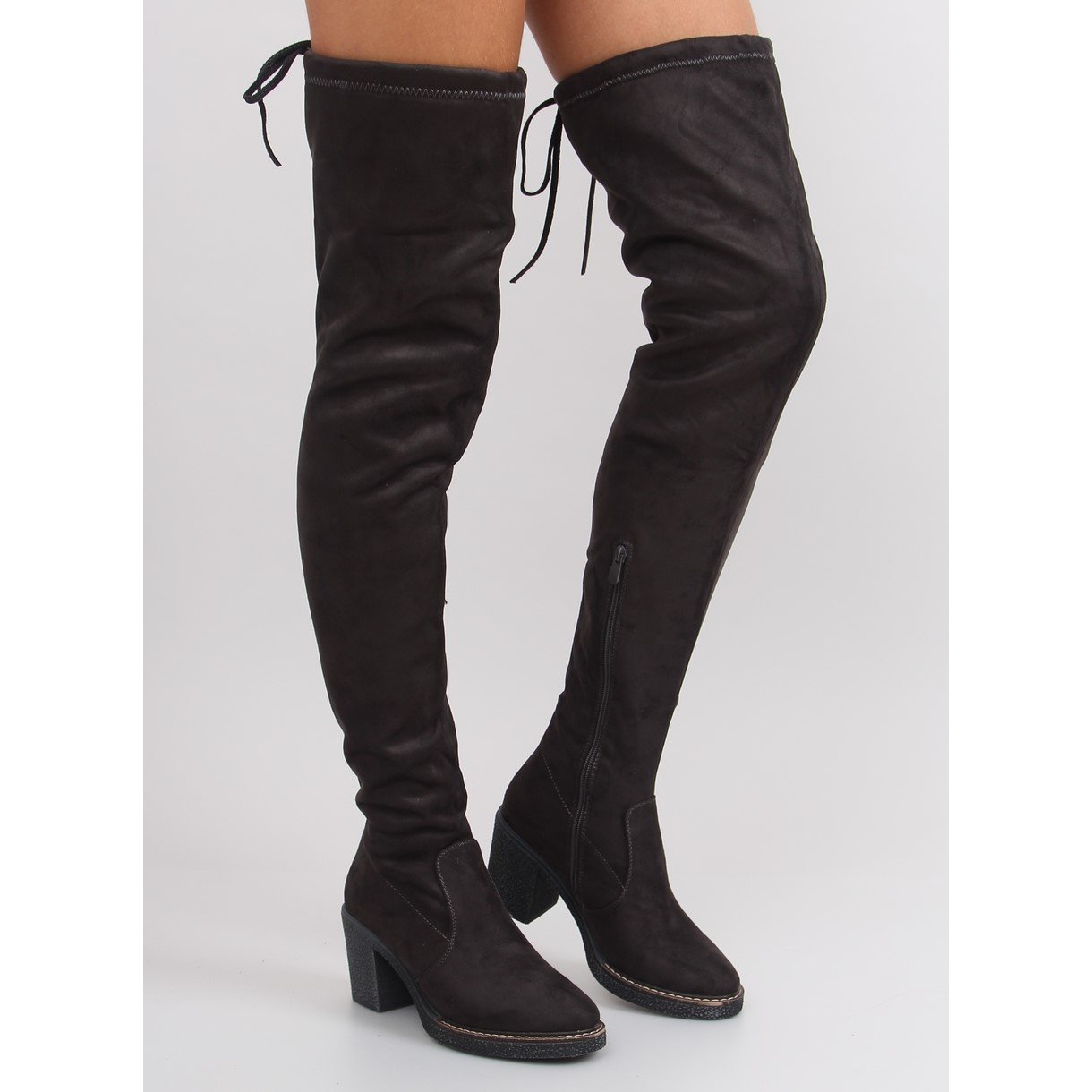 Details: Overknee-Stiefel auf bequemen Absätzen RB06 Grau