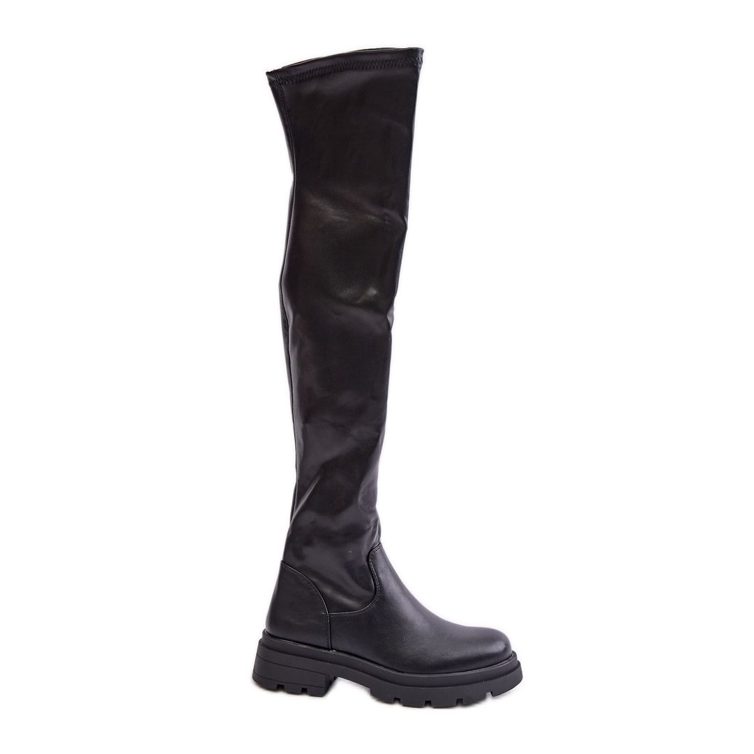 Inna marka Overknee-Stiefel aus Faux-Wildleder mit flachem Absatz, Schwarz Santira
