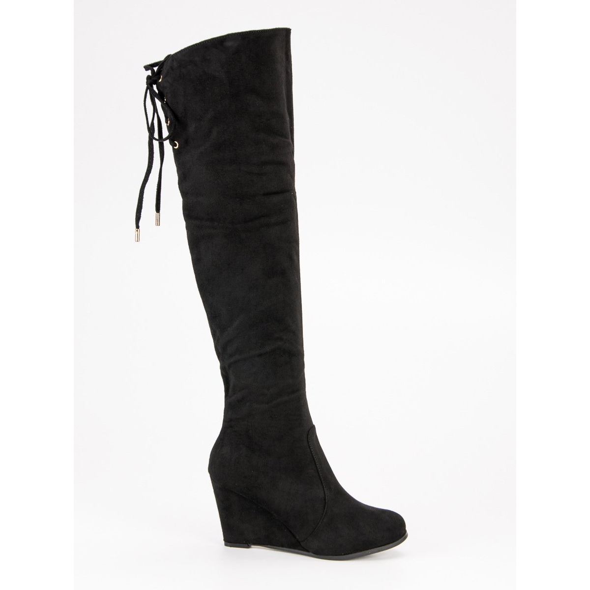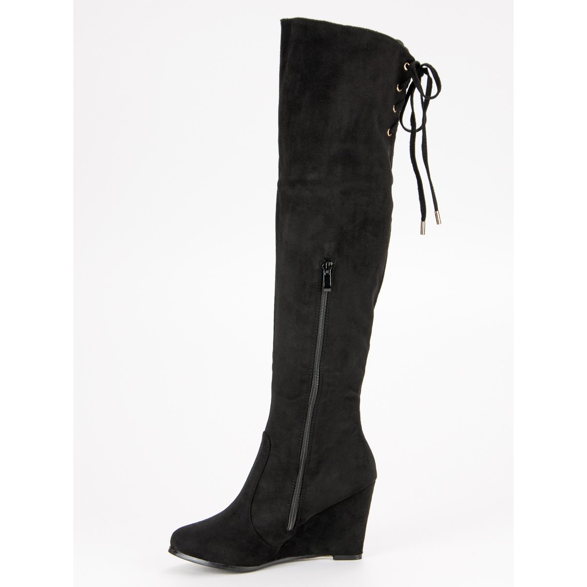 Dank des langen Schafts, der bis über das Knie reicht, verlängern diese Musketiere die Beine schön und die 8,5 Zentimeter hohen Keile sorgen für ausreichend Stabilität und Komfort beim Tragen und sind eine tolle Lösung für Frauen, die lieber auf traditionelle Absätze verzichten möchten.