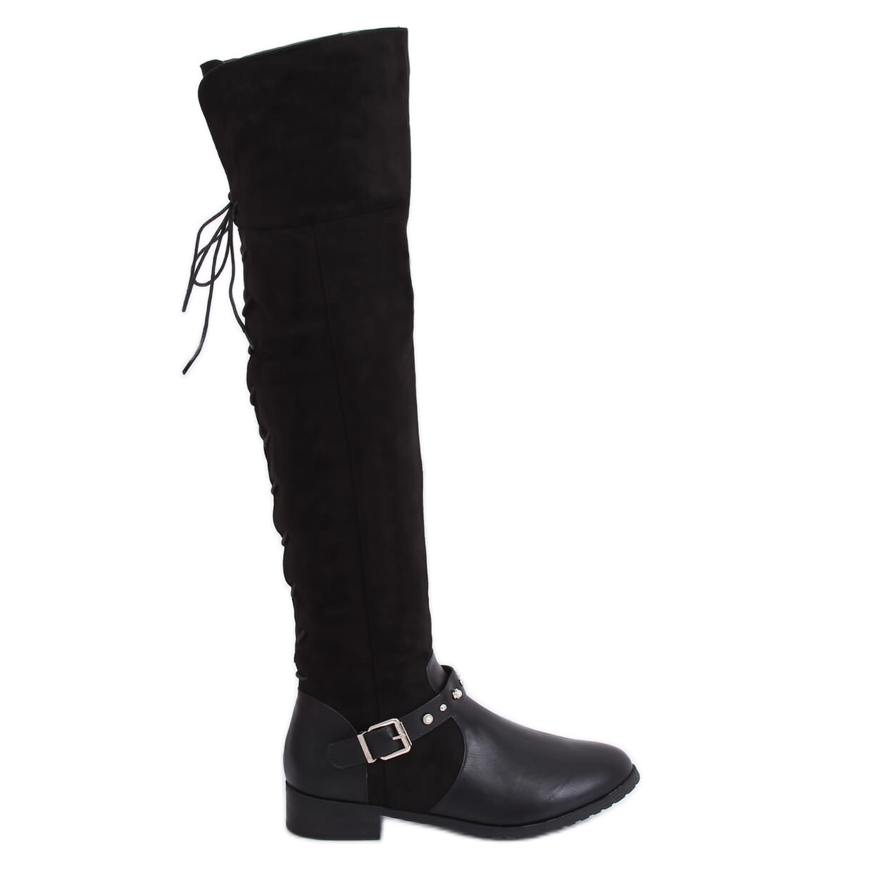 Details: Overknee-Stiefel mit flachem Absatz schwarz 688-3 Black