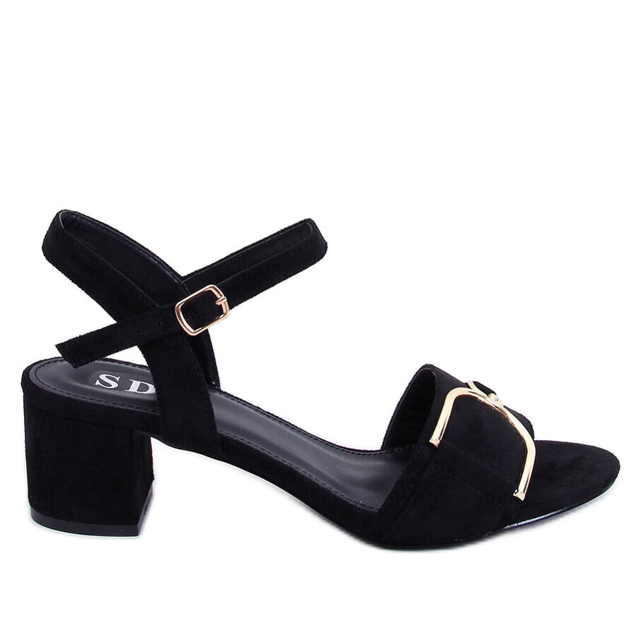 Der einstellbare Befestigungselement in Form einer Schnalle betont subtil den Knöchel und fügt den gesamten Stil hinzu. Sandalen, hergestellt aus ökologischem Wildleder, kombinieren einen modischen Look mit einem ökologischen Ansatz. Die klassische schwarze Farbe passt natürlich in jede Stilisierung, und goldene Akzente sind ein geschmackvolles Detail, das diese Sandalen sowohl für tägliche Ausflüge als auch für besondere Anlässe perfekt macht.